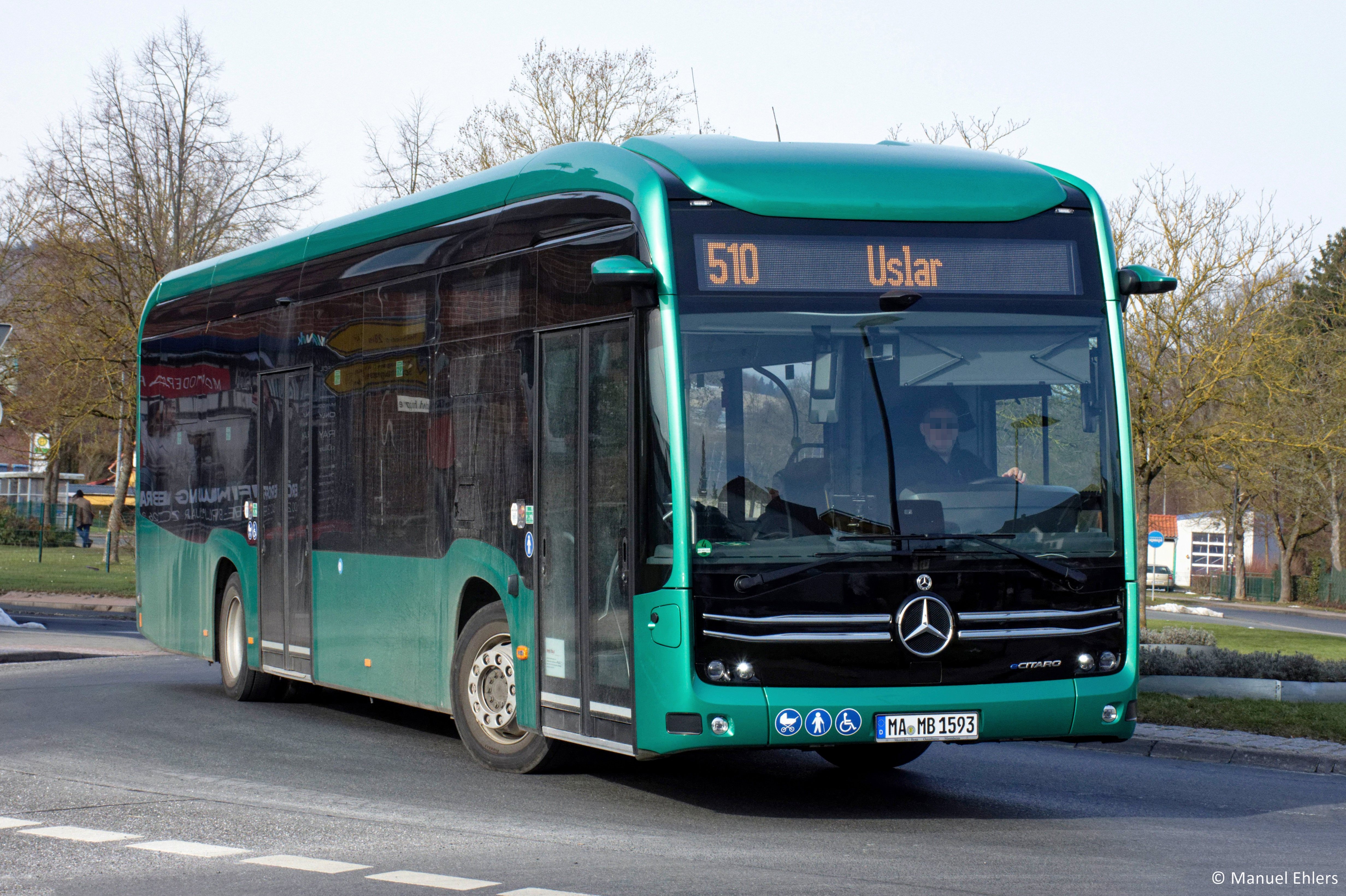 Nachdem in Uslar vor Kurzem bereits ein Iveco Crossway Elec getestet wurde, ist seit diesem Dienstag ein Mercedes-Benz eCitaro für Erprobungsfahrten im Einsatz. Der Elektrobus wird bis Sonntag, den 22. Februar 2026, im regulären Linienbetrieb unterwegs sein. Bei dem Fahrzeug mit dem Kennzeichen ...